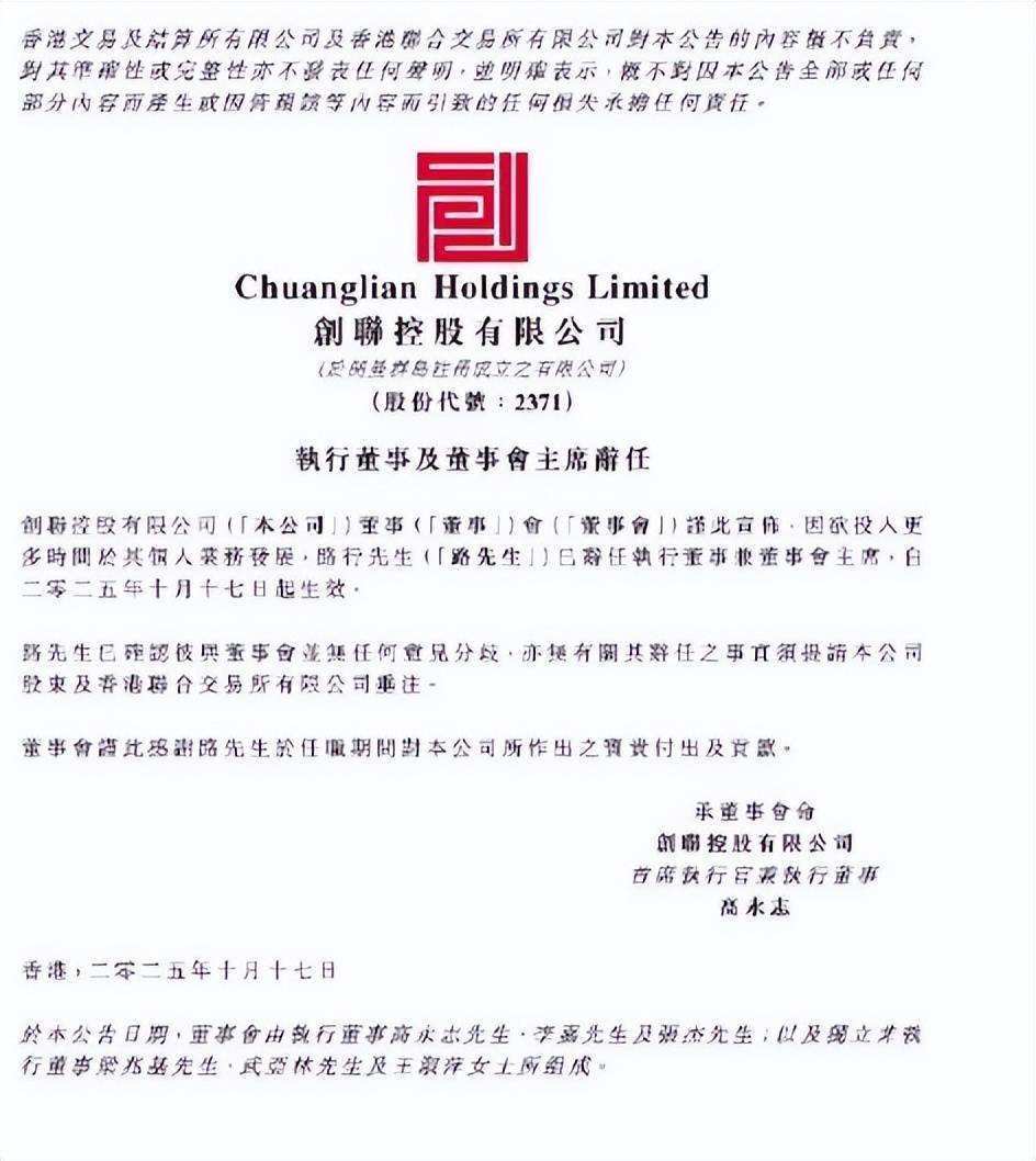 路行在10月17日突然辞去香港上市公司创联控股执行董事及董事会主席职务,理由是他要“投入更多时间于个人业务发展”。